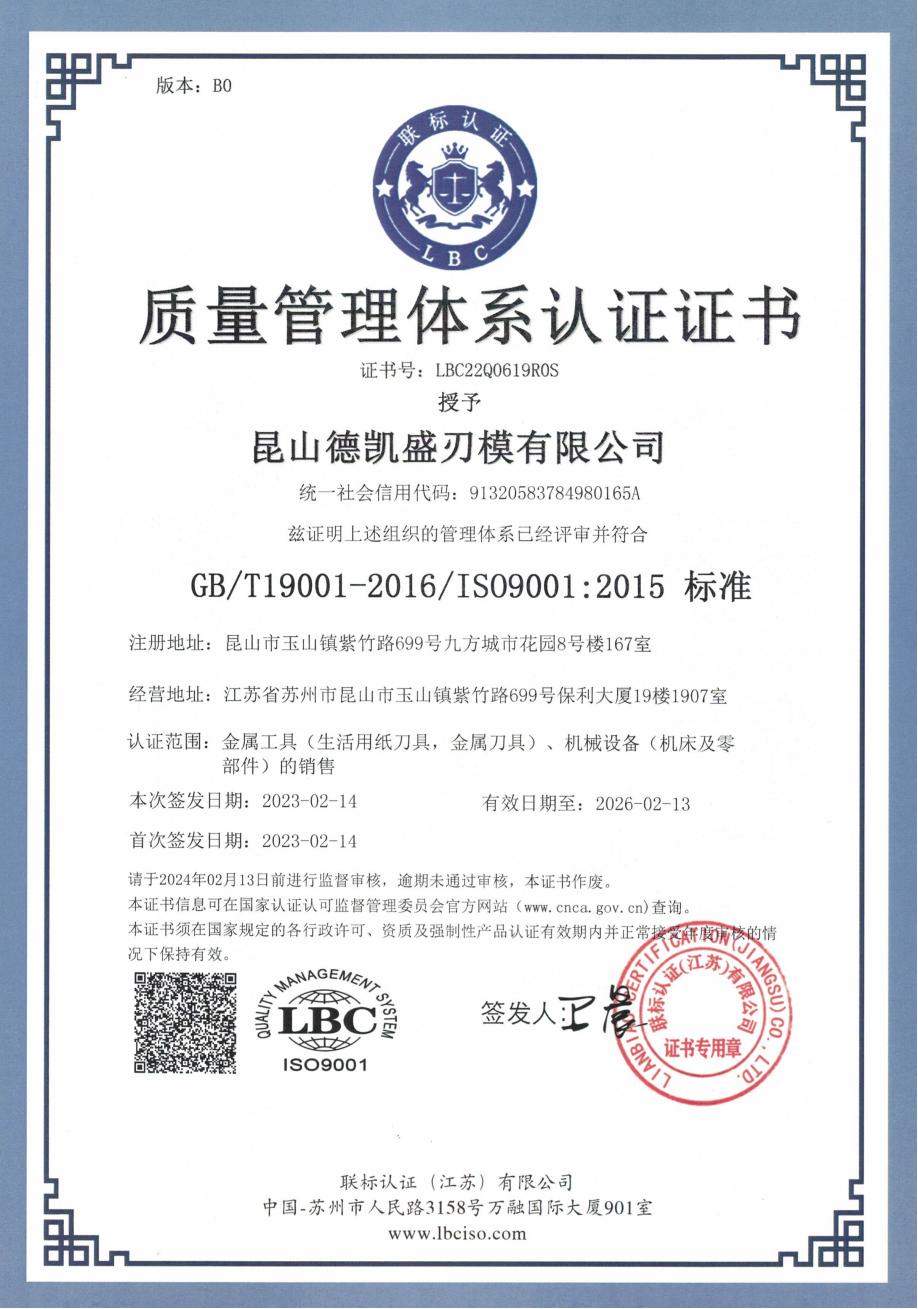 质量管理体系认证证书